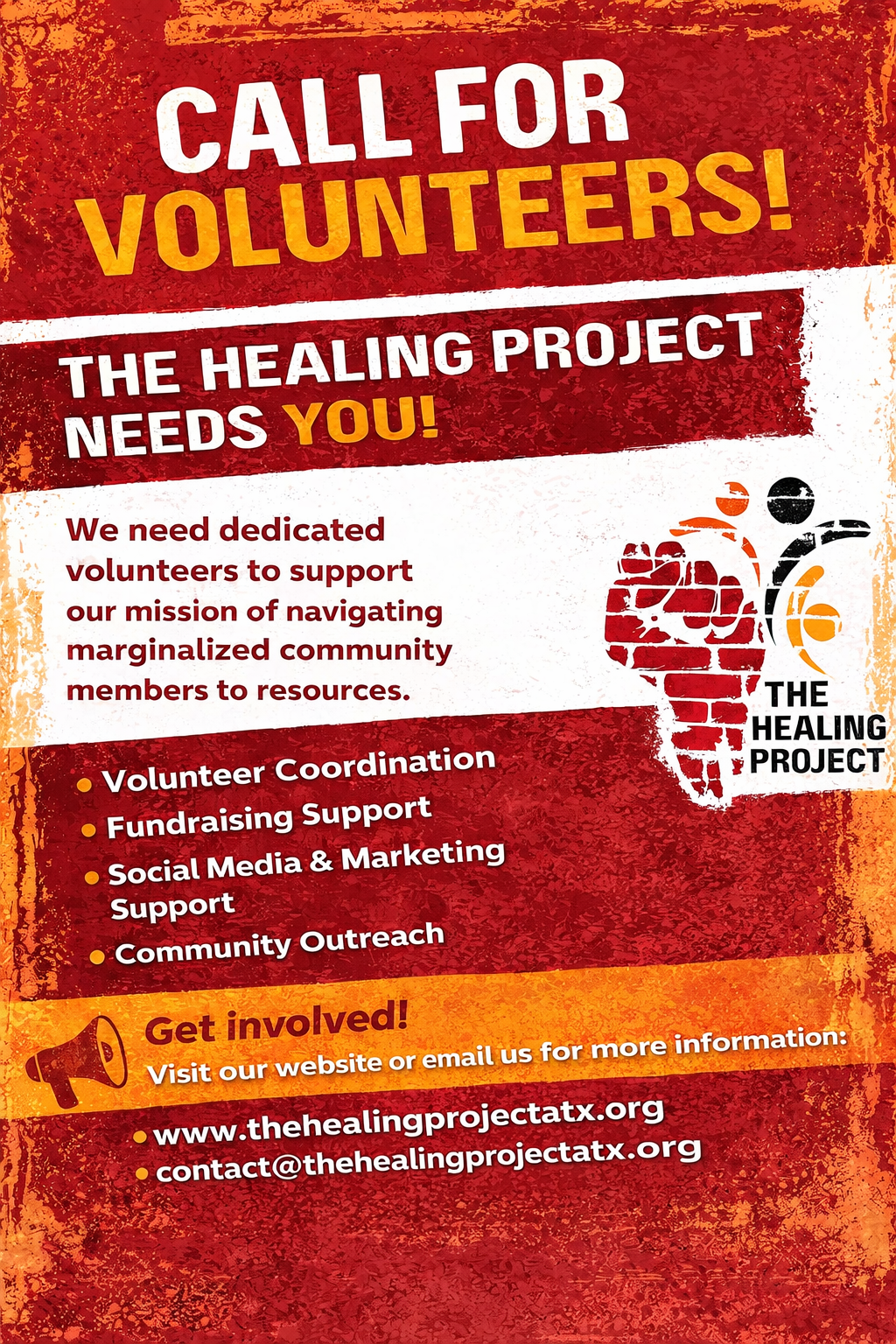 Support The Healing Project by helping share our story, programs, and impact. This role may include creating or scheduling posts, taking photos at events, helping with flyers or digital content, and spreading the word about volunteer opportunities, programs, and community events.